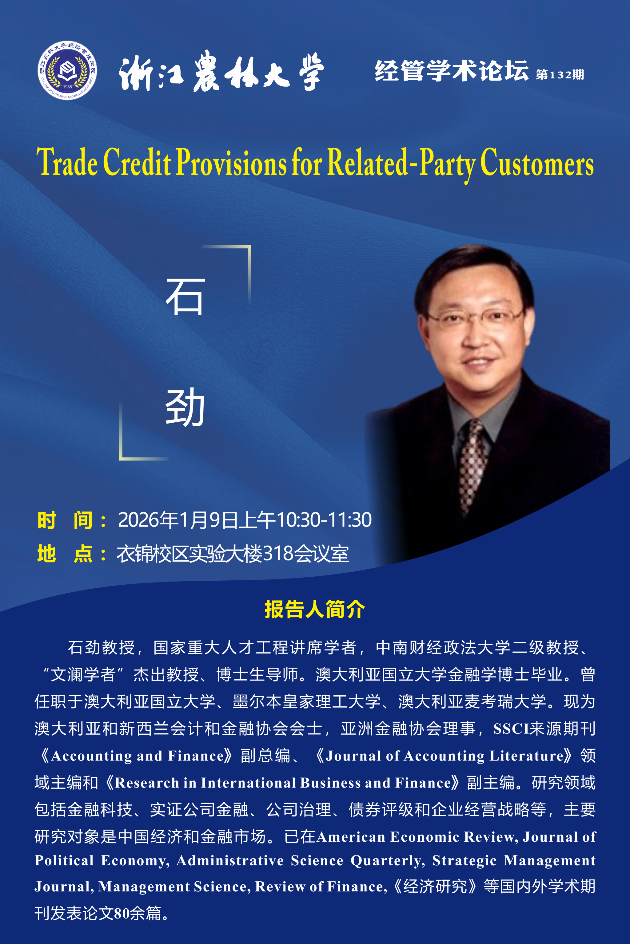 经管学术论坛第132期|Trade Credit Provisions for Related-Party Customers
