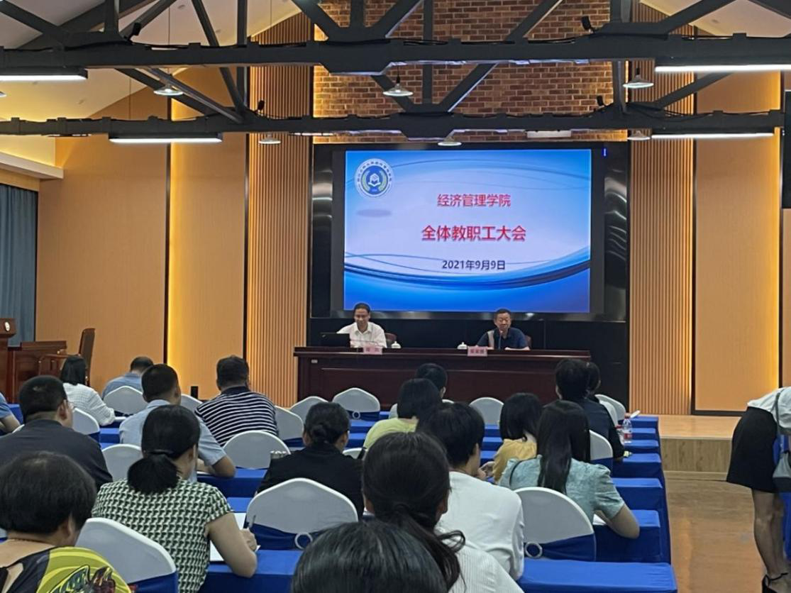 学院召开新学期全体教职工大会 9月9日下午,学院在印象农林大讲堂召开新学期全体教职工大会,学院领导班子以及全体教职工参加了会议。会议由周凯书记主持,校党委委员、副校长吴家胜应邀出席了会议并做了讲话。吴校长指出,经管学院是学校人文社科建设的领头羊,具有良好的发展条件和基础。学院在“十三五”期间,各项事业的发展呈现出了良好发展态势,值得骄傲和自豪。2021年作为“十四五”开局之年,学院在领导批示、智库建设、基地建设、媒体宣传等方面取...