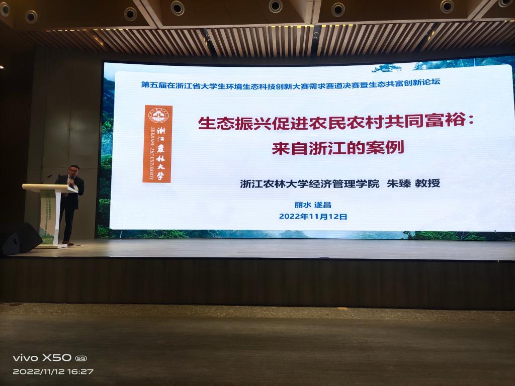 朱臻副院长受邀参加浙江省大学生环境生态科技创新大赛需求赛道决赛暨生态共富创新论坛并作主题报告 11月12-13日,由浙江省教育厅、浙江省大学生科技竞赛委员会、浙江省土壤肥料学会、浙江省生态学会主办,中共遂昌县委、县人民政府、中国计量大学承办的第五届浙江省大学生环境生态科技创新大赛需求赛道决赛暨生态共富创新论坛在遂昌县举行。Williamhill中文校长沈希出席开幕式并致辞,中央农办、农业农村部乡村振兴专家咨询委员会委员赵兴泉等出席开幕式。开幕式由副校长沈月琴主持。遂昌县领导及有关部门代表、竞赛委员会委员、竞...