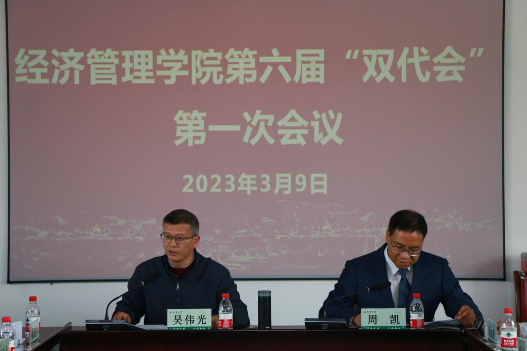 学院召开第六届工会委员会第一次会议 3月9日下午,经管学院召开第六届工会委员会第一次会议,学院党委书记周凯及新一届工会委员会全体委员参加了会议。 周凯对新当选的工会委员表示祝贺。他讲到,学院工会一直以服务教职工为主线,以特色工会活动为载体,紧紧围绕工会基本职能,发挥了桥梁纽带作用。他要求,各位委员要根据职责分工,履职担当,主动作为,紧盯年度目标任务,有力推进工会各项工作,助力学院高质量发展。 会上,以无记名投票的方式等额选...