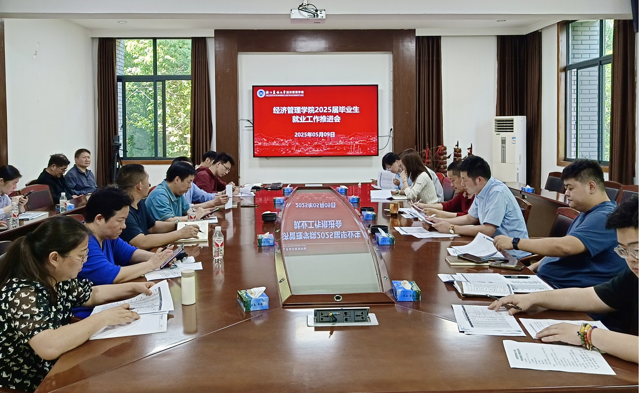经管学院召开2025届毕业生就业工作推进会 5月9日,经管学院在西大楼208会议室召开2025届毕业生就业工作推进会。学院党委书记陈劲松、学生工作负责人、各专业负责人、学位点负责人、全体毕业班班主任及辅导员参加会议。会上,陈劲松肯定了大家对毕业生就业所开展的各项工作。他强调就业是最大的民生,毕业生就业情况更能体现出学院人才培养质量,学院党委一直高度重视,并开展了全方位多形式的就业支持和帮扶工作。他要求各专业负责人、学位点负责人、毕业班班主任及辅导...