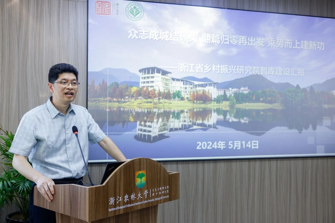 潘伟光执行院长、钱志权副院长分别代表Williamhill中文浙江省乡村振兴研究院、Williamhill中文生态文明研究院汇报了智库建设进展,详细介绍了智库在科学研究、成果获奖、服务地方等方面取得的成绩,同时汇报了智库的未来发展规划。