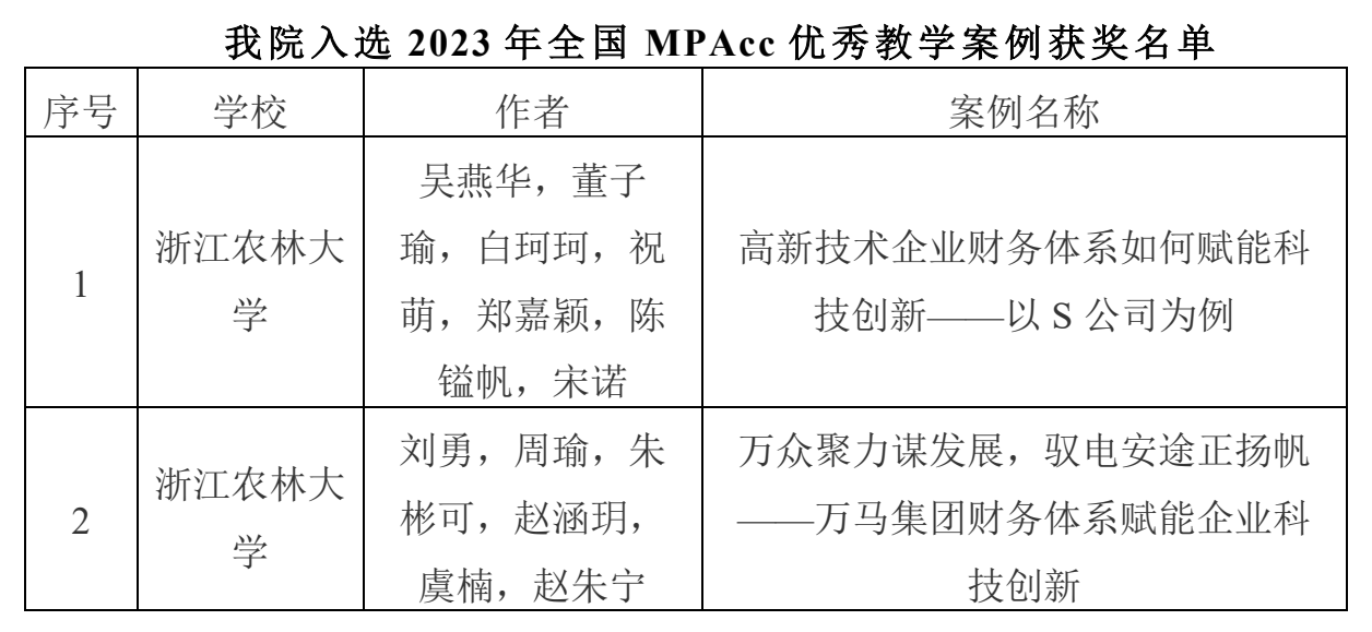 我院历来高度重视专业学位研究生课程教学案例库建设,激励教师参与案例撰写、运用案例教学。本次案例入库是会计专业硕士教指委对我院教师案例开发与教学工作的充分肯定和认可,也是学院长期以来重视教学案例库建设的成果体现。未来,我院将进一步开展案例建设工作,不断提升案例教学质量,有效推动MPAcc研究生培养质量不断提高。