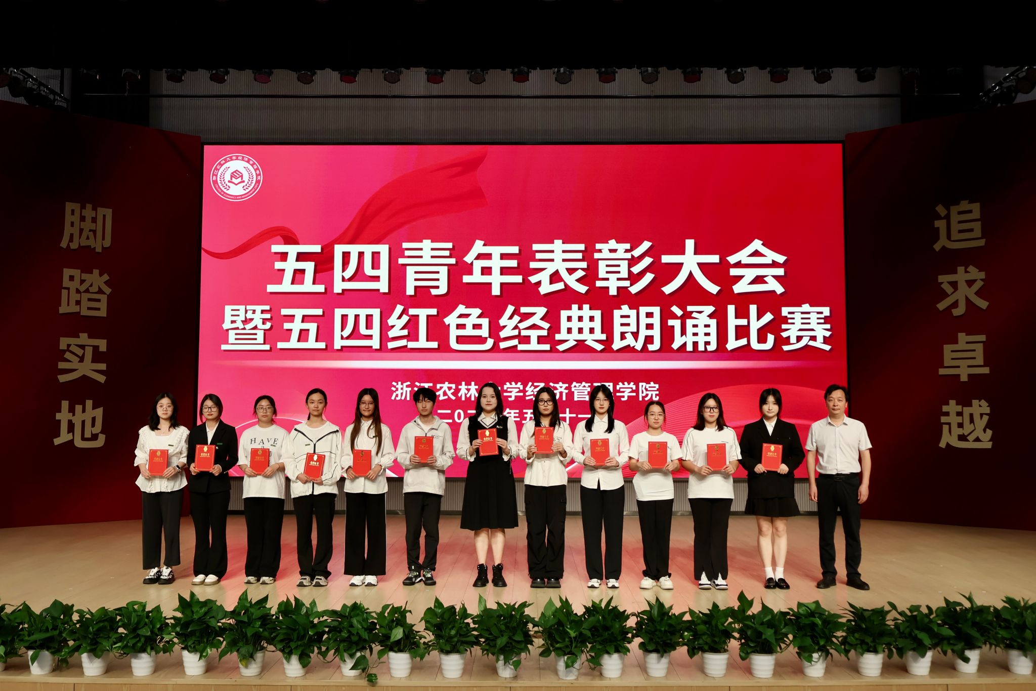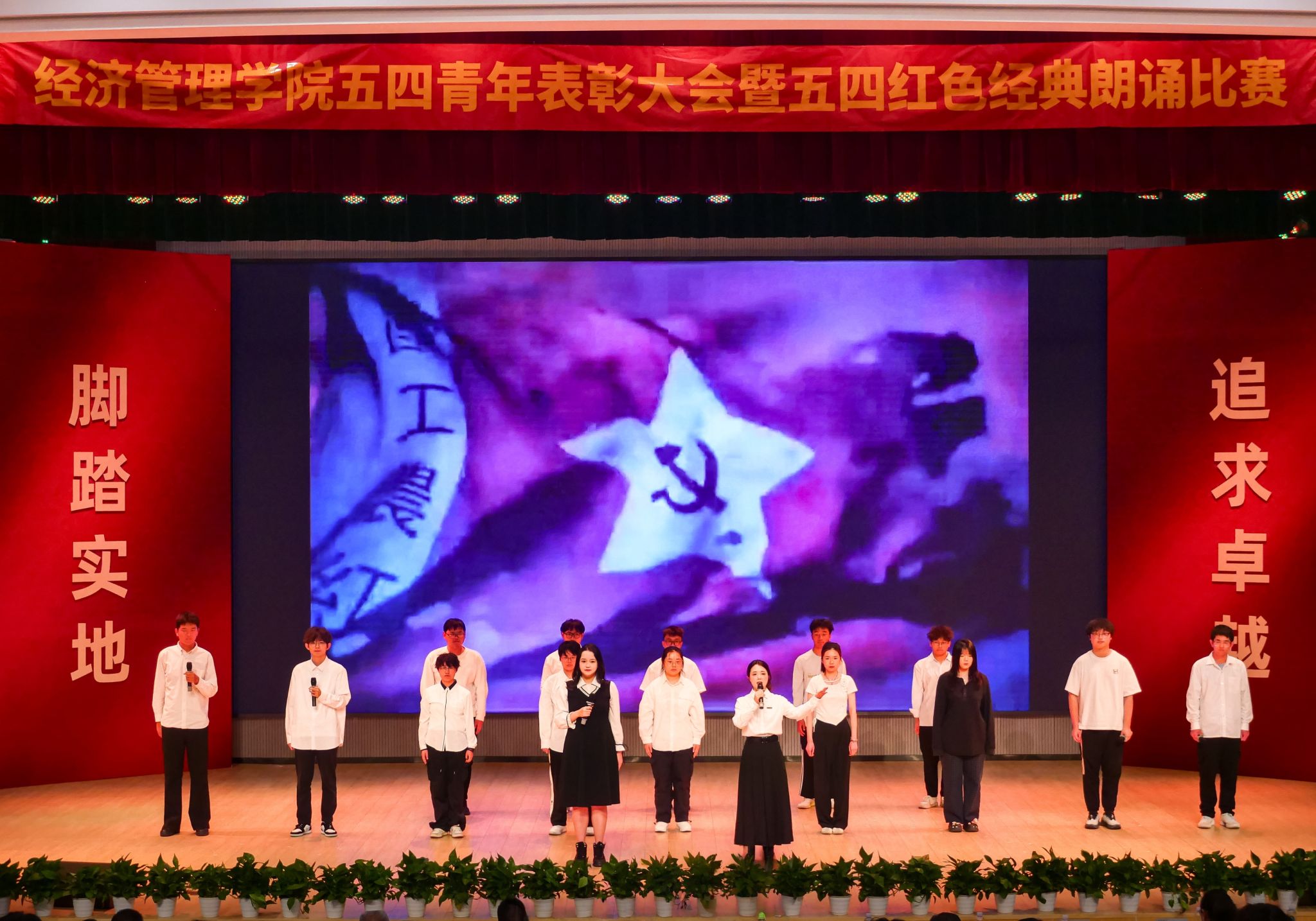 活动分五四青年表彰和“青春心向党 五四诵华章”红色经典朗诵比赛两部分。学院表彰了在学风建设、社会实践、创新创业、团学工作、文体活动等领域取得优异成绩的经管学子,和在教学科研、人才培养等领域潜心耕耘,无私奉献的学院教师。红色经典朗诵比赛部分,学院各专业紧扣红色主题,用集体朗诵的形式,缅怀五四先驱崇高的爱国情怀和革命精神,激发经管青年与时代同行的理想信念。