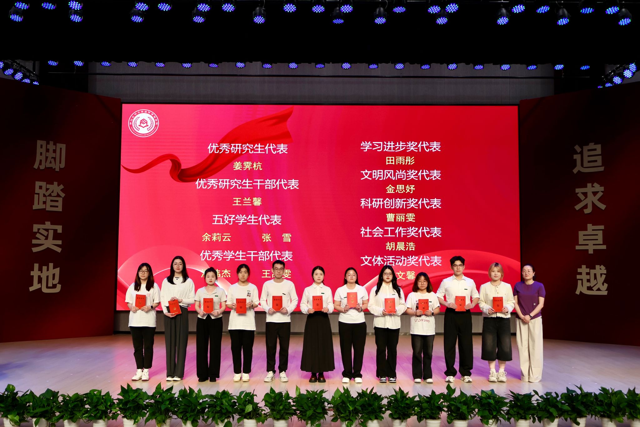 (校党委研究生工作部副部长、研究生院副院长黄萍为获得各类先进评定个人荣誉的代表颁奖)