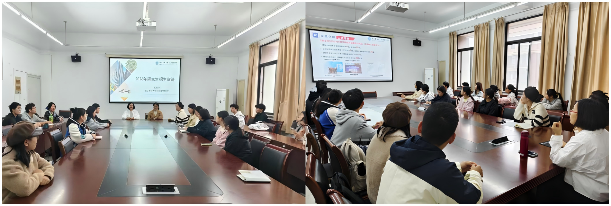 10月23日上午,农业管理专硕负责人杨建辉副教授、金融专硕学位点负责人黄建风副教授联合走进嘉兴南湖学院WilliamHILL中国,为50余位考生带来宣讲。杨老师先后介绍了学院情况、学位点招生政策、学科优势及就业去向,明确专业特色与报考注意事项;并对考生的问题进行了耐心回应。