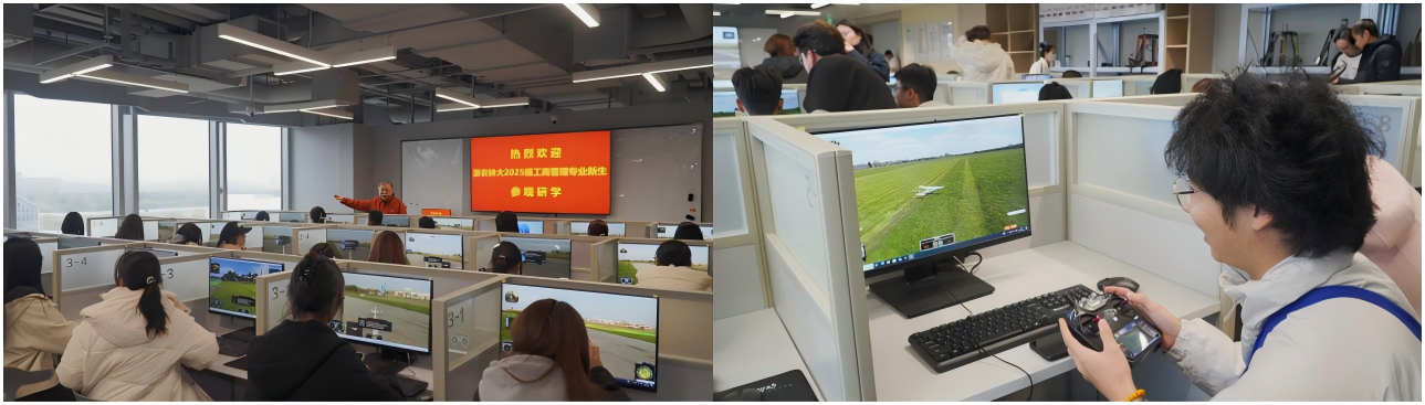 在杭州阿里巴巴达摩院-南湖未来科学园和浙江同创空间技术有限公司,同学们沉浸在人工智能、未来网络、空地一体及未来健康等“未来产业森林”的巨大想象空间,体会到了新一轮科技革命和产业变革的无穷魅力。在朱永法教授的带领下,同学们参观了作为“中国飞谷”核心承载体的南湖未来科学园,朱永法教授详细介绍了低空经济产业发展趋势以及浙江同创在低空经济赛道上的创业历程和卓越成就。在工商管理专业教师陈小华创办的浙江同创空间技术有限公司,同学们探索无人机应用场景和奥秘,在公司模拟器上体验无人机操纵和对抗,亲自触摸前沿科技,蕴育逐梦低空经济的理想。