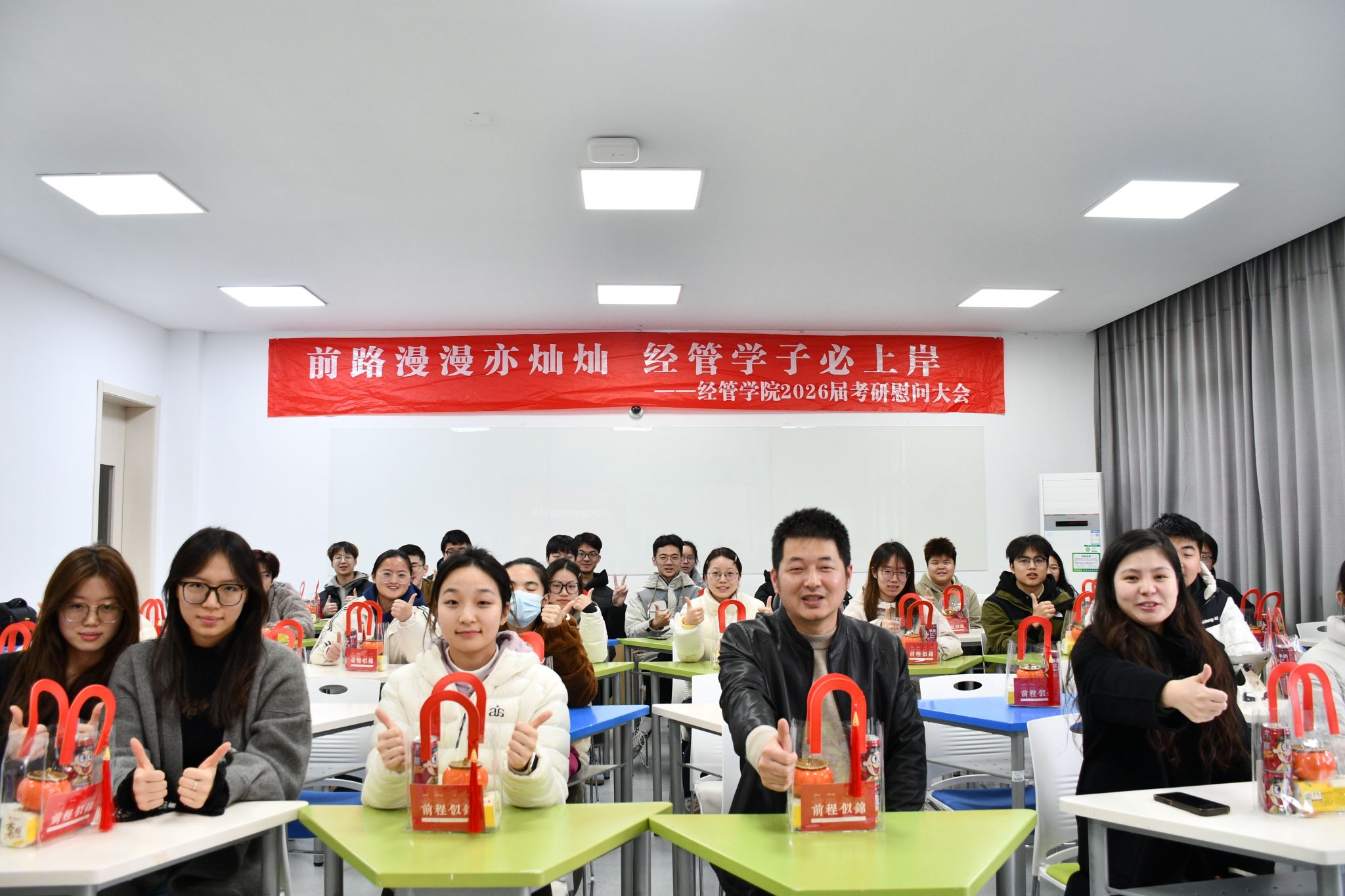 为了表达对考研学子的关怀与鼓励,活动现场学院为每位考研同学发放了精心准备的“考研慰问大礼包”。学院领导和老师们希望通过这份小礼物,传递对同学们的美好祝愿,愿大家都能一战成硕、成功上岸。