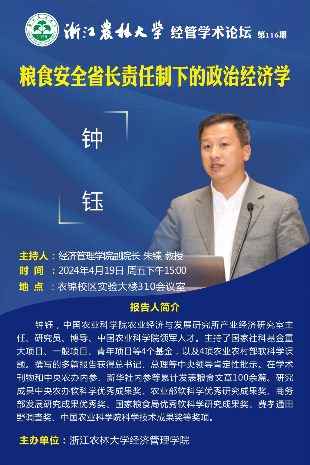 经管学术论坛第116期|粮食安全省长责任制下的政治经济学