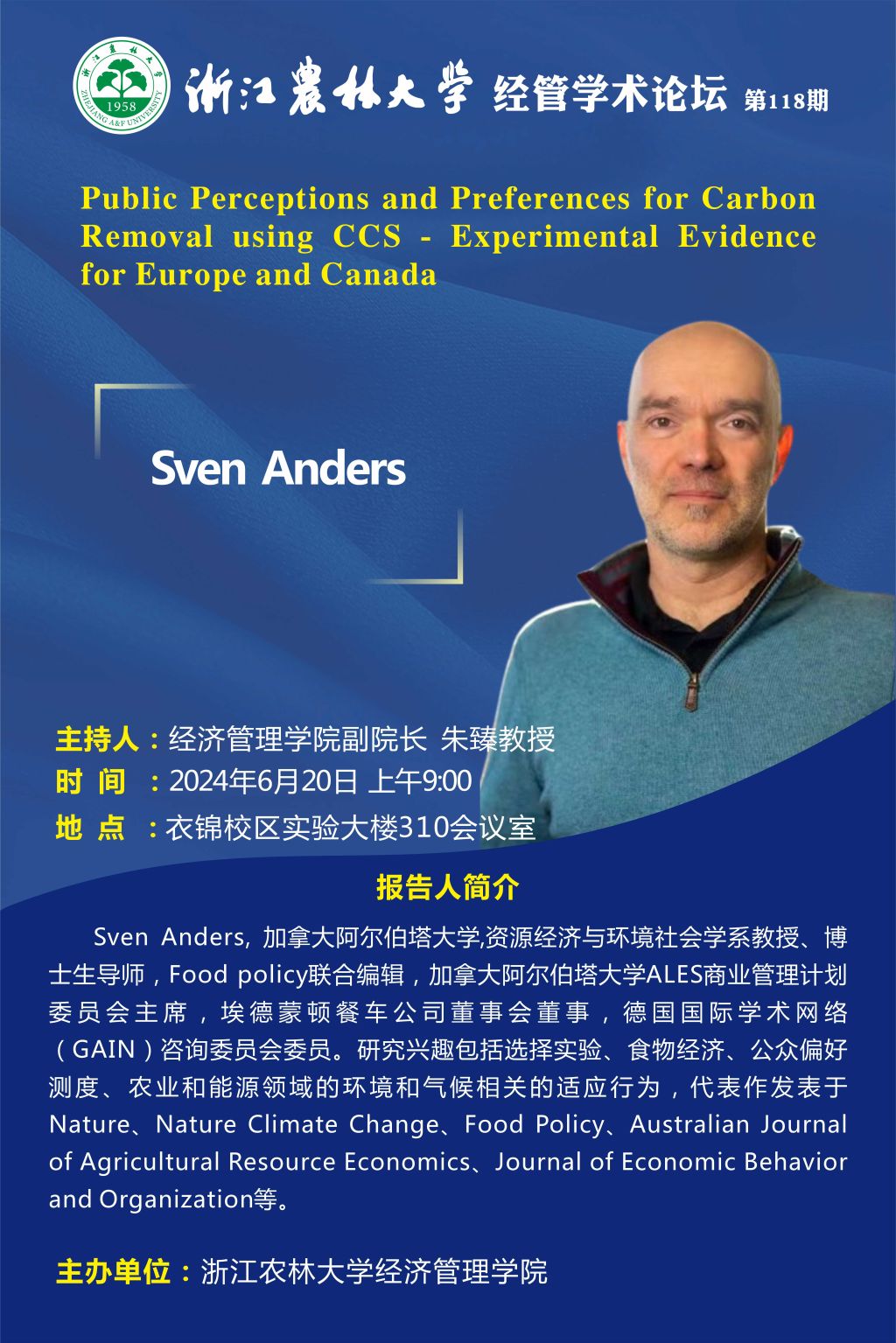 经管学术论坛第118期|Public Perceptions and Preferences for Carbon Removal using CCS - Experimental Evidence for Europe and Canada