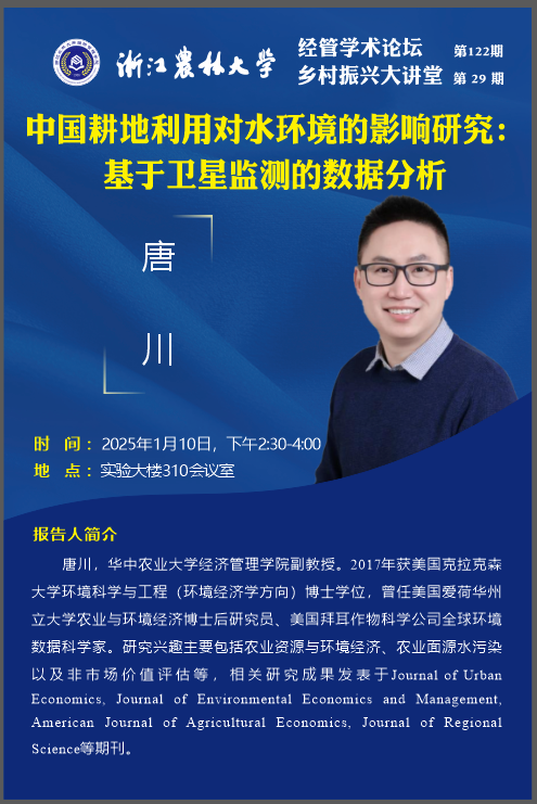 经管学术论坛第122期|中国耕地利用对水环境的影响研究:基于卫星监测的数据分析