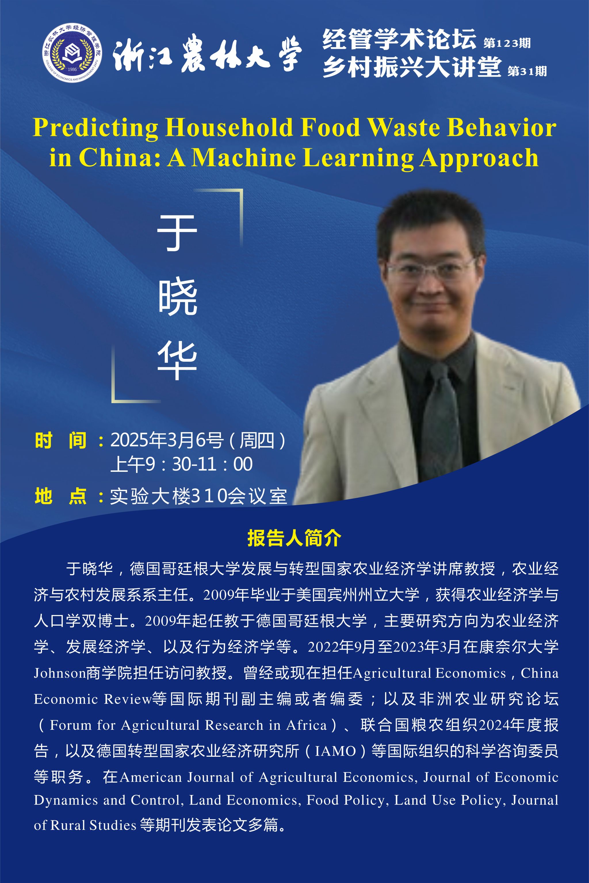 经管学术论坛第123期|Predicting Household Food Waste Behavior in China: A Machine Learning Approach