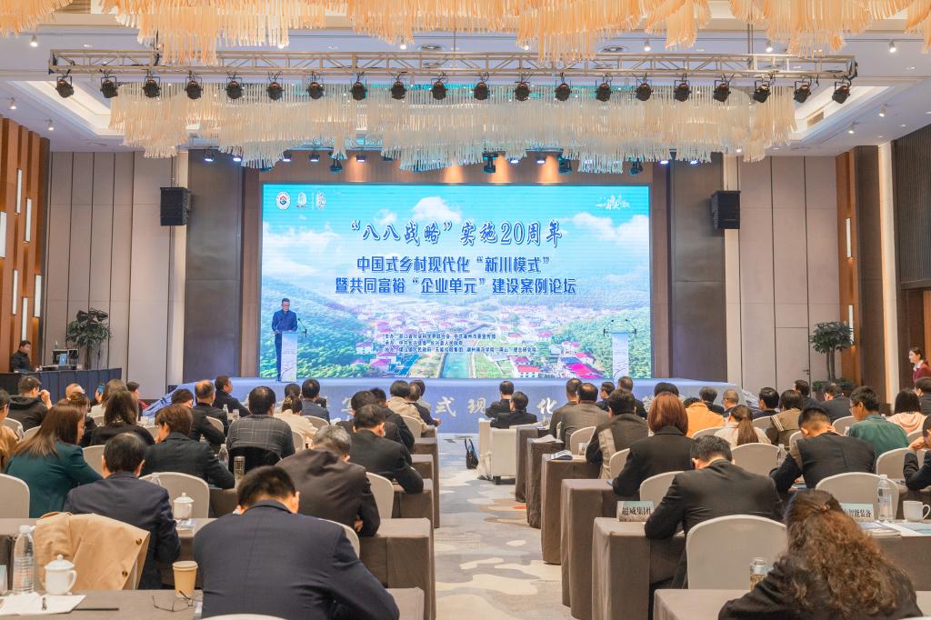 浙江省社科联党组书记郭华巍在致辞中就全面探讨推进中国式乡村现代化的路径和模式,主要提出三点要求:一要在守正创新上下功夫,创造出更多“新川模式”;二要在深入研究上下功夫,形成一系列“硬核成果”;三要在宣传转化上下功夫,推动理论研究“开花结果”。