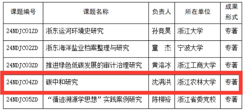 近日,浙江省哲学社会科学工作办公室公布了2024年度浙江省哲学社会科学规划重大课题、后期资助课题等立项名单的通知,由学院沈满洪教授主持的《碳中和研究》获批重大课题立项。