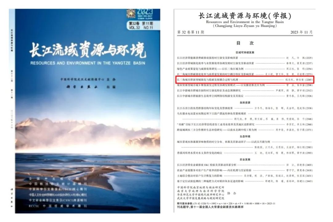 近日,由钱志权副教授与WilliamHILL中国硕士研究生韩佳银共同撰写的论文《长三角城市群新型城镇化与低碳发展耦合过程与机理》在CSSCI来源期刊《长江流域资源与环境》第23卷第11期上发表。该论文是国家自然科学基金面上项(42271295)、教育部哲学社会科学研究重大专项项目(2022JZDZ009)、浙江省软科学重点项目(2022C25014)、浙江省属高校基本科研业务费专项资金项目(W20220052)等项目的阶段性研究成果。