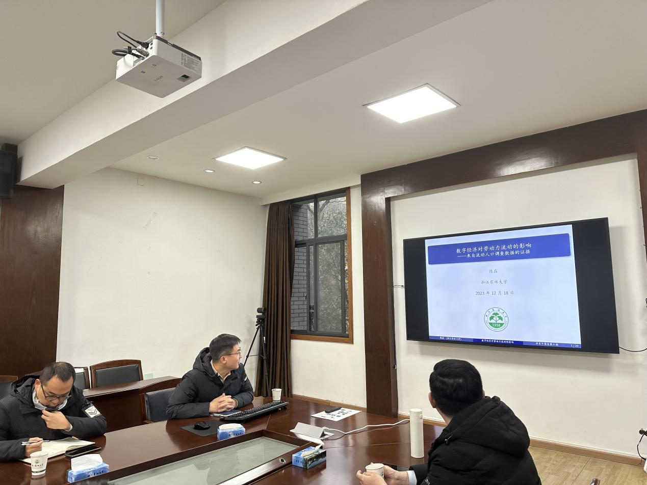 12月18日,经管学术论坛学术午餐会第六期在西大楼208会议室顺利举行,陈磊博士做了题为《数字经济对劳动力流动的影响——来自流动人口调查数据的证据》的学术分享,经管学院多位青年教师参与了本次午餐会。