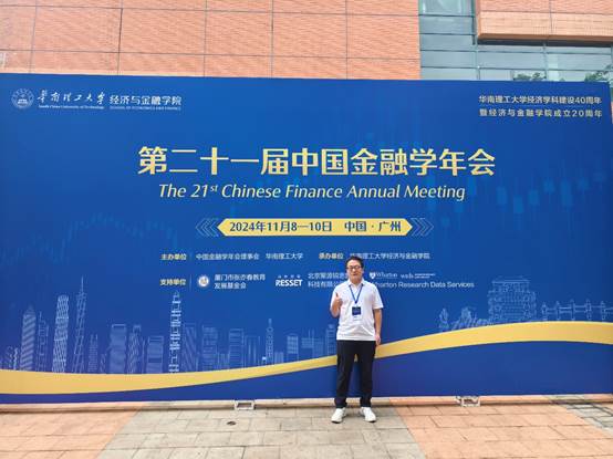 2024年11月8日-10日,由中国金融学年会理事会和华南理工大学联合主办,华南理工大学经济与金融学院承办的第二十一届中国金融学年会在广州成功举办。作为全国金融学科水平最高、规模最大的学术会议,为交流领域内前沿学术成果、应用进展以及政策制定与实施等提供了重要平台。本次年会汇聚了国内外高校、研究机构、金融机构的顶级专家学者和学生1000余人,共收到1183篇中英文论文投稿。我院孙阳阳博士应邀参加本届年会,并作论文汇报。