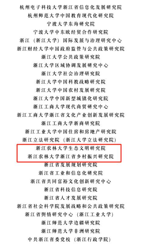 近日,中国社会科学评价研究院“中国智库综合评价研究项目(2025)”公示了2025年AMI智库入库名单,全国有558家智库入库,其中浙江省新型专业智库有29家入选,学院重点支撑的2家省级重点新型智库“Williamhill中文浙江省乡村振兴研究院”“Williamhill中文生态文明研究院”双双入选。