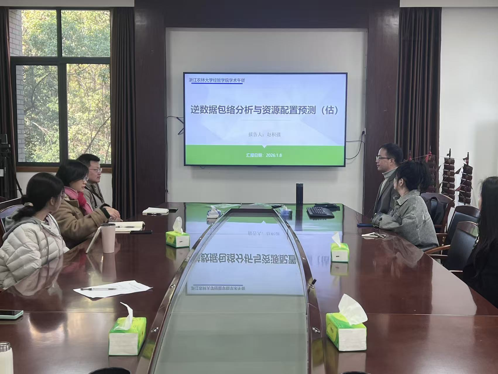 1月8日,经管学术论坛——学术午餐会第二十三期在西大楼208会议室顺利举行,赵积强博士做了题为《逆数据包络分析及资源配置预测》的学术分享,经管学院多位青年教师参与了本次午餐会,会议由鲁晓玮博士主持。