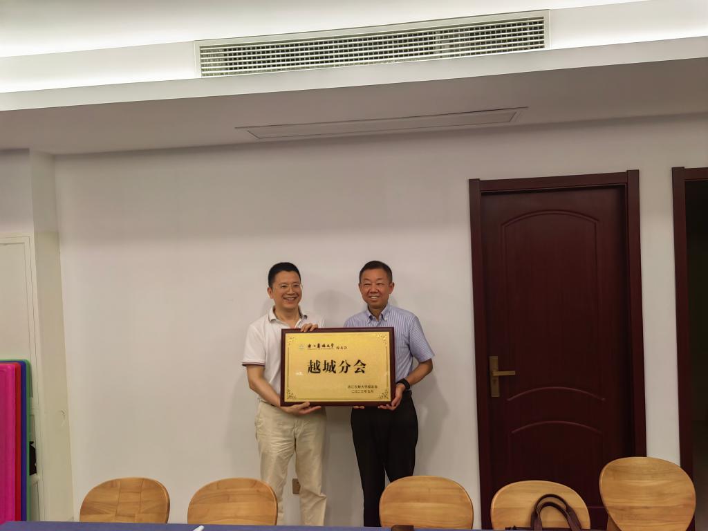 8月19日,副校长吴家胜一行走访看望绍兴越城区校友并举行分会授牌仪式。森保85级校友、绍兴市越城区校友会分会长、江苏北辰置业有限公司总经理魏法林,林学78级校友、绍兴市政协原副主席倪善贵,曾在校工作过的校友、绍兴轨道交通集团有限公司董事长赵定国,林学83级校友、绍兴市人社局社保局长吴永生,林经85级校友、绍兴市柯桥区校友会分会长、绍兴雪尔服饰有限公司董事长蒋国良,林专90级校友、丽水市太平洋保险董事长蒋阮洪,经济林85级校友、柯桥区委副书记、人大常委会副主任诸剑明,林学85级校友、柯桥区监察委员会副主任、区人大常委会副主任郎煜江,经管94级校友、柯桥区委编办主任孙其康,林经98级校友、绍兴市委组织部干部处处长俞丰等校友参加活动。
