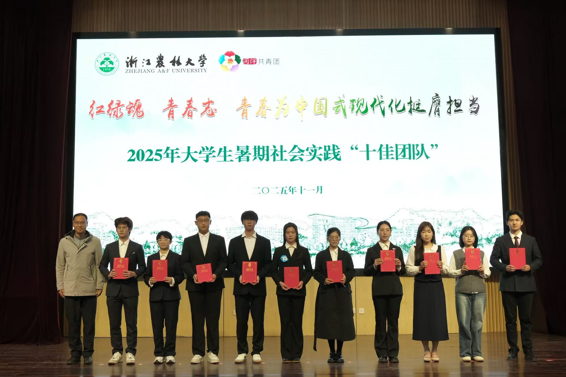 11月28日,我校举行“2025年大学生暑期社会实践活动风采展”,经管学院凭借出色表现获得佳绩:不仅获评“优秀组织单位”,旗下“百村足迹”实践团更斩获“十佳团队”称号,集中展现了学院在乡村振兴主题实践中的扎实成效与青春力量。
