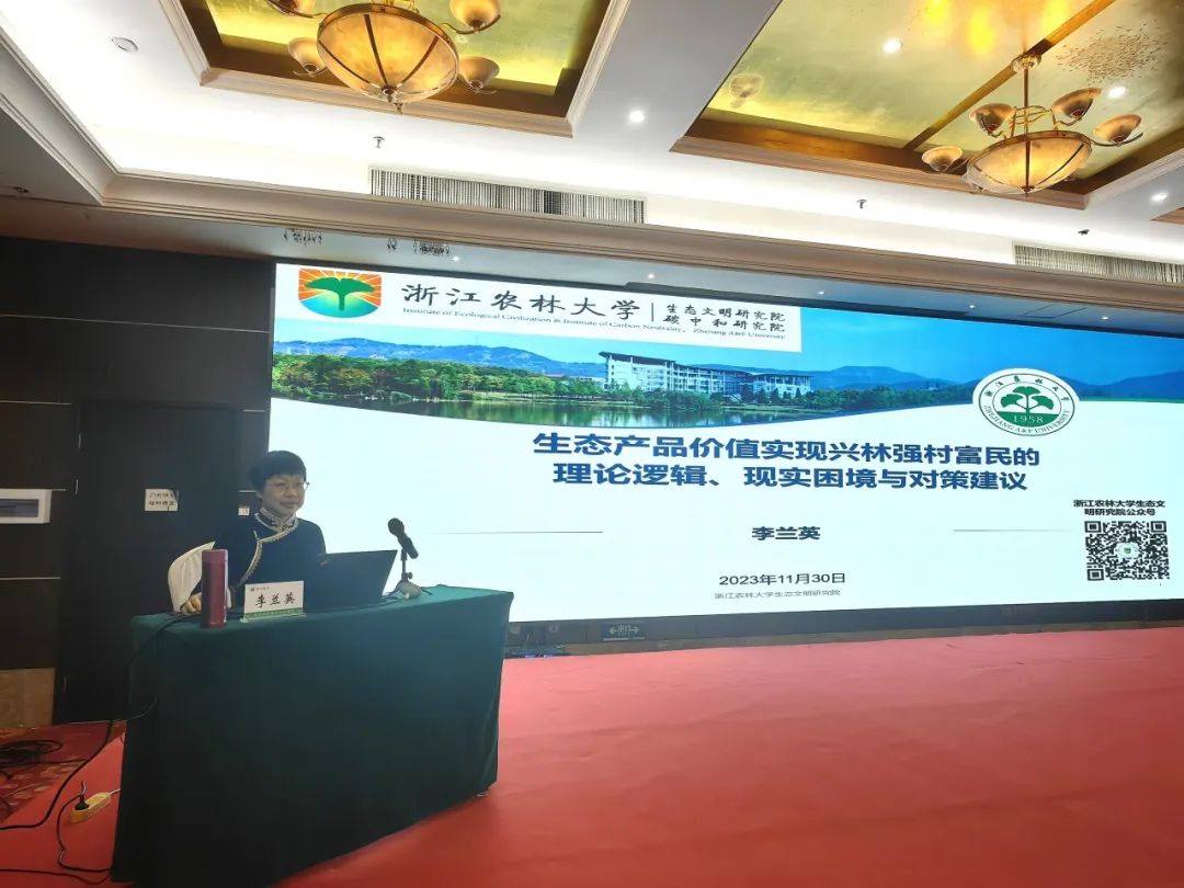 近日,为深入学习贯彻《深化集体林权制度改革方案》,浙江省深化集体林权制度改革培训班在杭州举办。李兰英教授受邀为本次培训班学员授课并作题为《生态产品价值实现兴林强村富民的理论逻辑、现实困境与对策建议》的主旨报告。浙江省林业局党组成员、副局长陆献峰出席并讲话,各市、县林业主管部门相关负责同志参加培训。