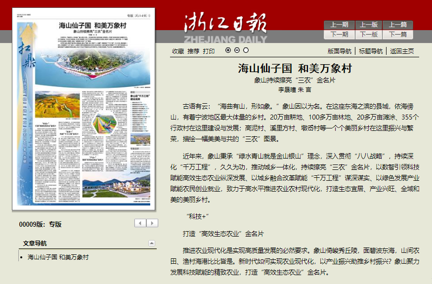2月23日,在《浙江日报》第9版刊发的《海山仙子国 和美万象村——象山持续擦亮“三农”金名片》一文中,潘伟光教授就相关话题作了专家点评。