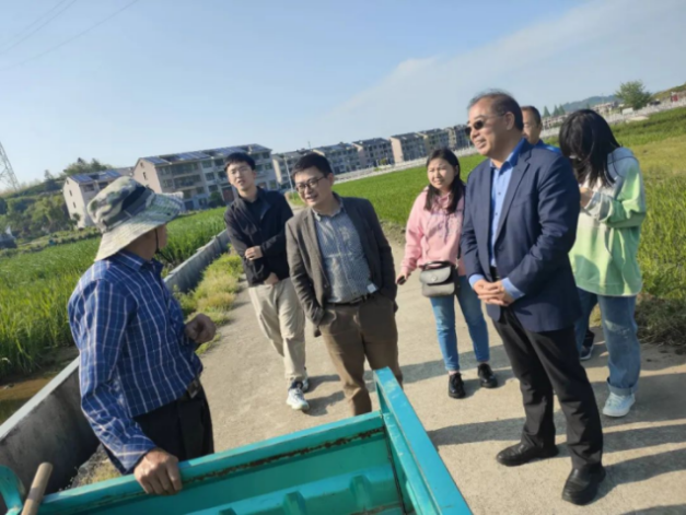 沈满洪教授等在茭鳖混养基地与农户交谈生态农业成效