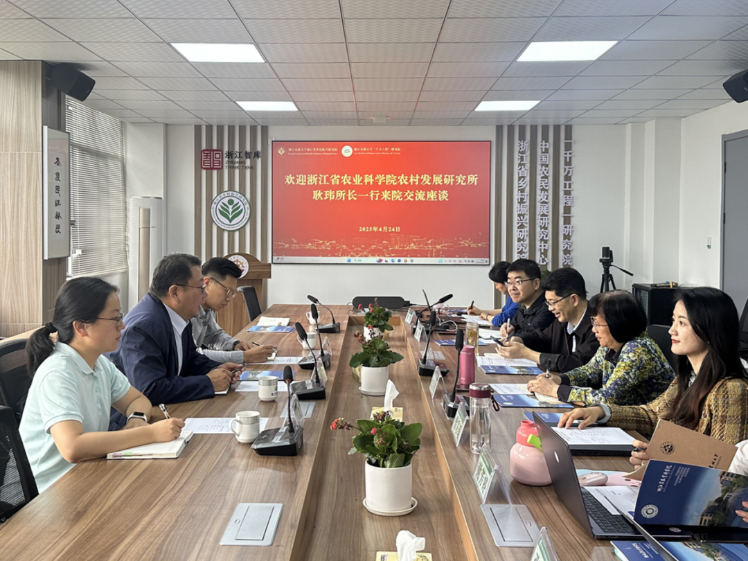 浙江省农业科学院农村发展研究所耿玮所长一行到乡村振兴研究院交流 4月24日,浙江省农业科学研究院农村发展研究所所长耿玮、人才振兴与主体发展研究室主任李宝值和博士卓妮一行到乡村振兴研究院访问交流。研究院院长沈月琴,执行院长潘伟光,外联部主任徐彩瑶,学术部主任谢芳婷,副主任张梦玲,乡村教育中心副主任陈方,以及研究院办公室人员等参加会议,会议由沈月琴主持。沈月琴对耿玮所长一行莅临指导表示热烈的欢迎,对长期以来在科学研究和研究生培养等方面的友好合作表示由衷的感谢。她指...